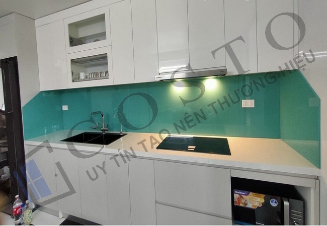 - Chịu Nhiệt Tốt: Kính ốp bếp màu xanh ngọc thường được làm từ kính cường lực, có khả năng chịu nhiệt tốt, bảo vệ tường bếp khỏi các tác động của nhiệt độ cao trong quá trình nấu nướng.